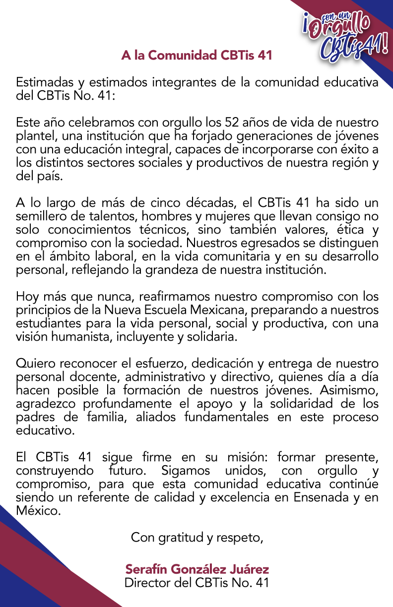 Esta propuesta está diseñada para que el CBTis 41 proyecte su identidad hacia el futuro, alineando su quehacer diario con la NEM, el MCCEMS y los retos educativos